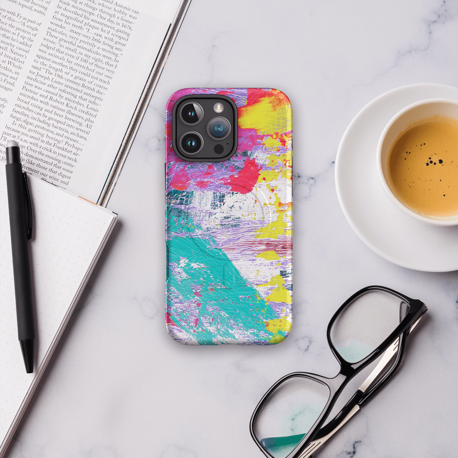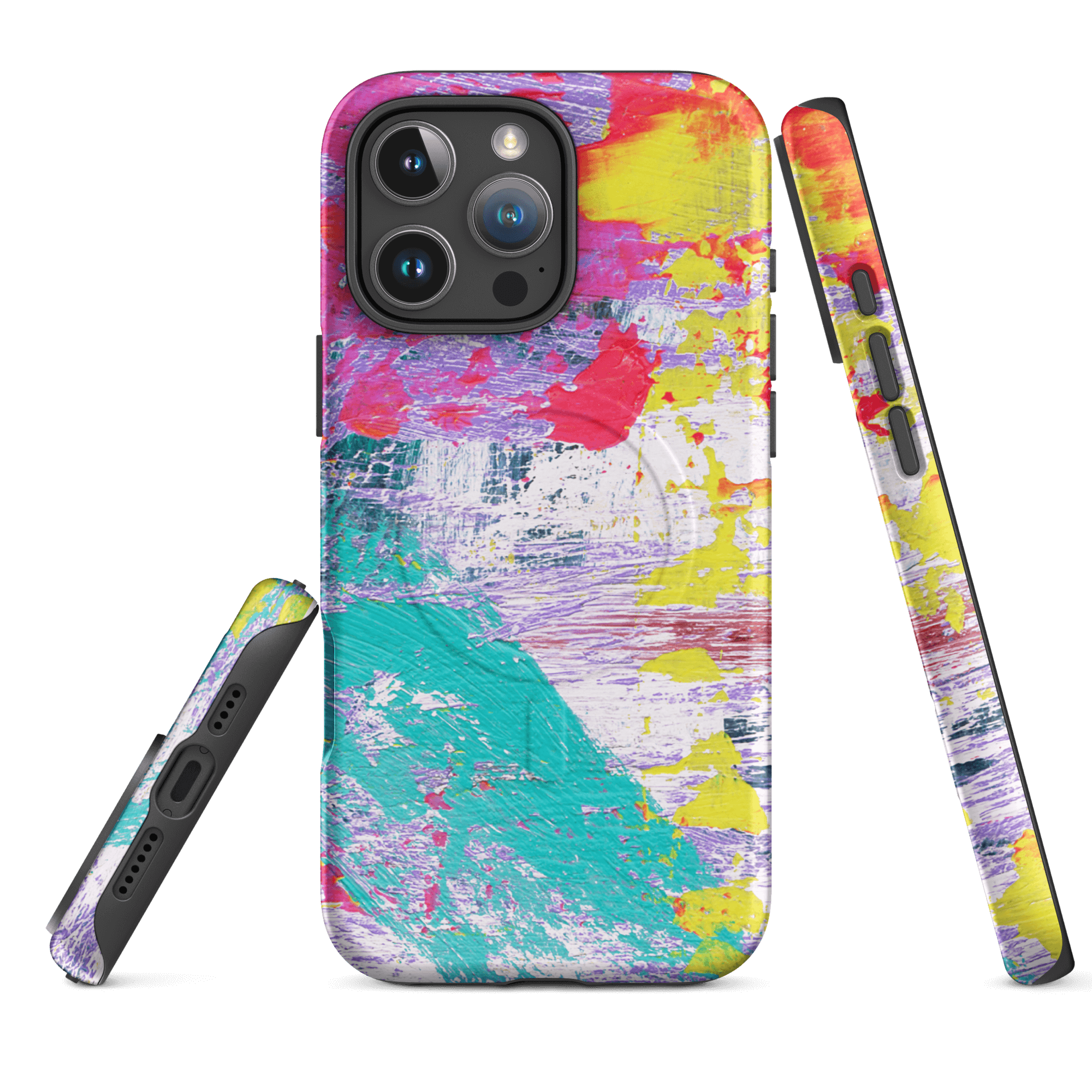 Bring your phone to life with the Color Splash Dreams MagSafe Tough Case — a vibrant explosion of color and creativity. Designed for those who love to stand out, this case features a bold abstract paint design blending turquoise, pink, yellow, and lavender brush strokes that turn your iPhone into a mini masterpiece.